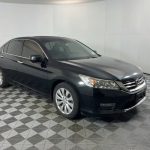 The 2013 Honda Accord Touring is a well-equipped midsize sedan that blends V6 performance, premium comfort, and Honda reliability in a refined everyday package. Finished in Crystal Black Pearl with a Black interior, this front-wheel-drive sedan is powered by a 3.5L V6 SOHC i-VTEC 24V paired with a 6-speed automatic transmission. It features perforated leather-trimmed seats, heated front seats, navigation, rear parking camera, premium 360-watt audio system, memory seat, HomeLink, power moonroof, dual-zone automatic climate control, power driver and passenger seats, and alloy wheels. With its upscale Touring trim and strong V6 engine, this Accord is a great option for buyers who want comfort, performance, and long-term value in one attractive sedan.